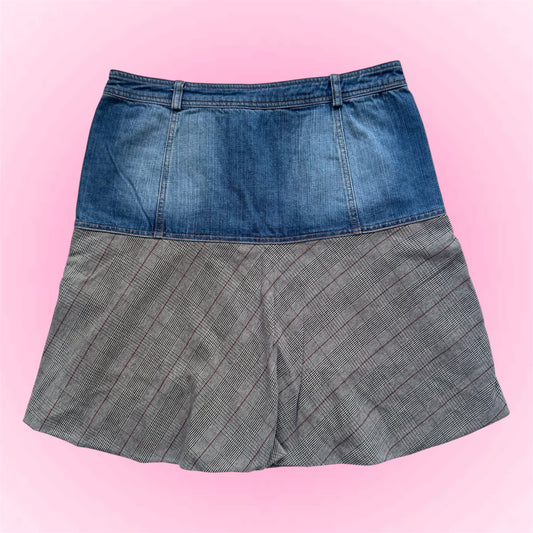 Denim & Plaid Mini Skirt (M)