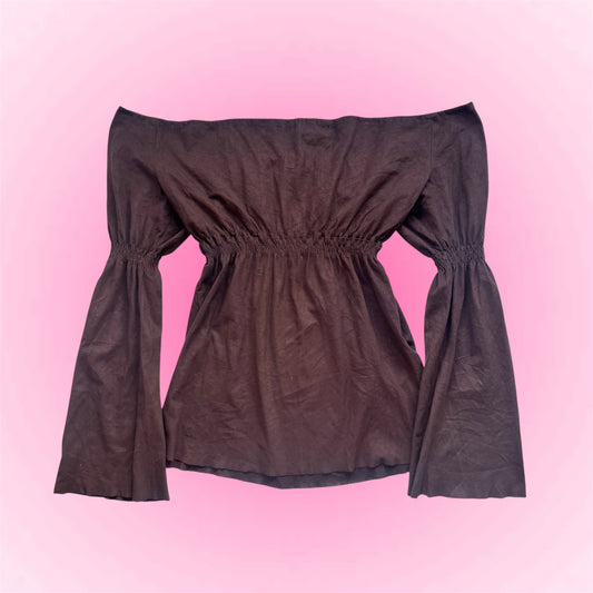 Brown Puff Sleeve Blouse (M)
