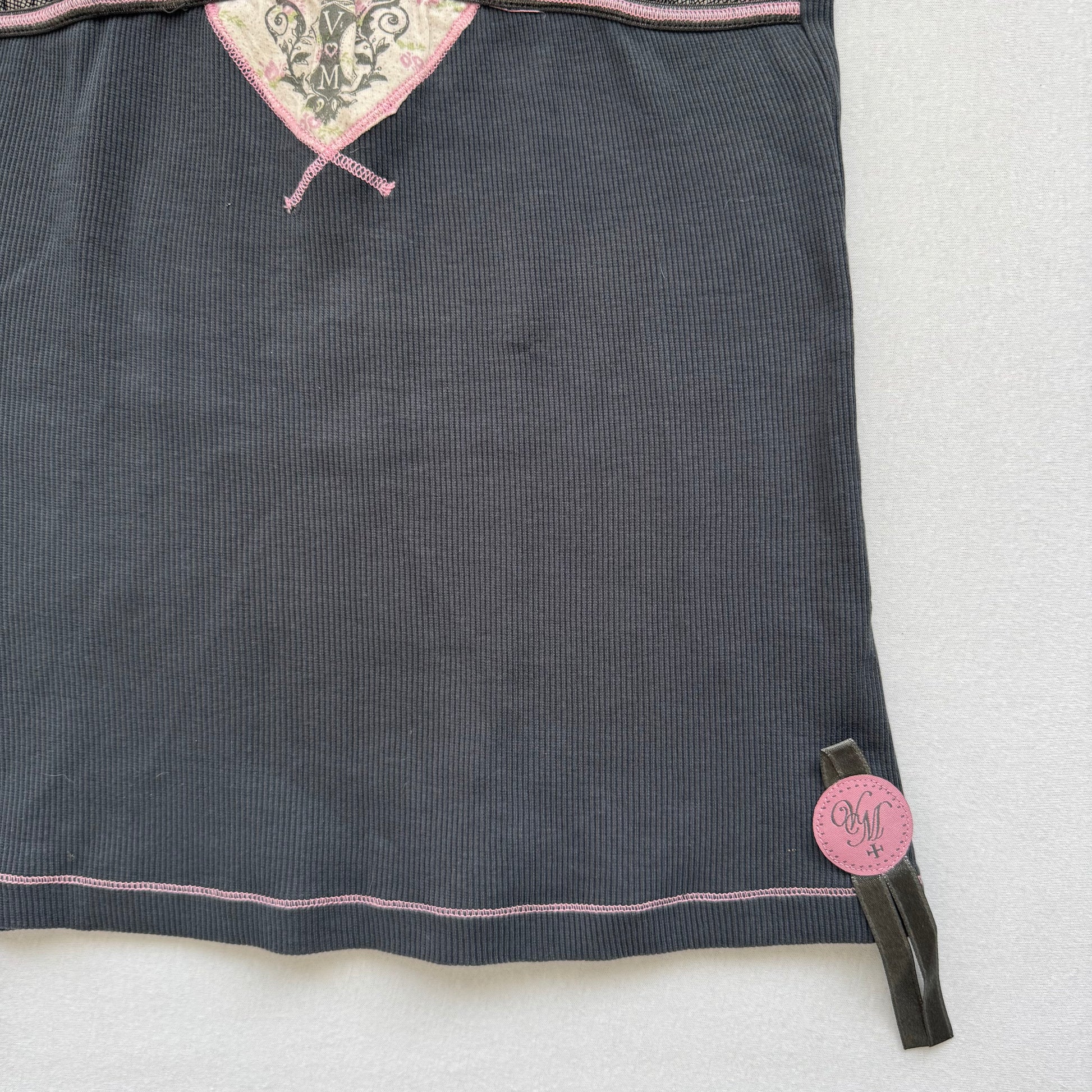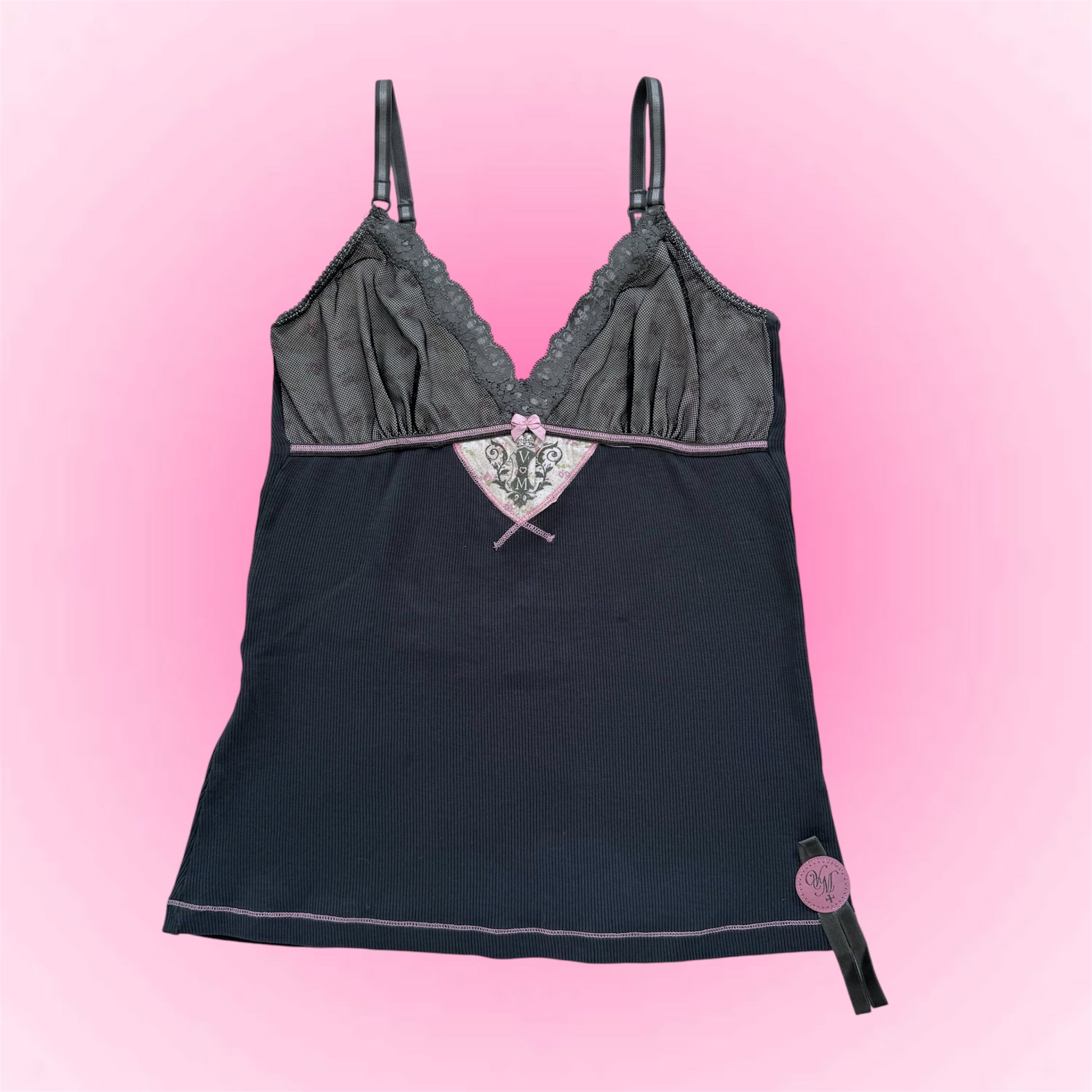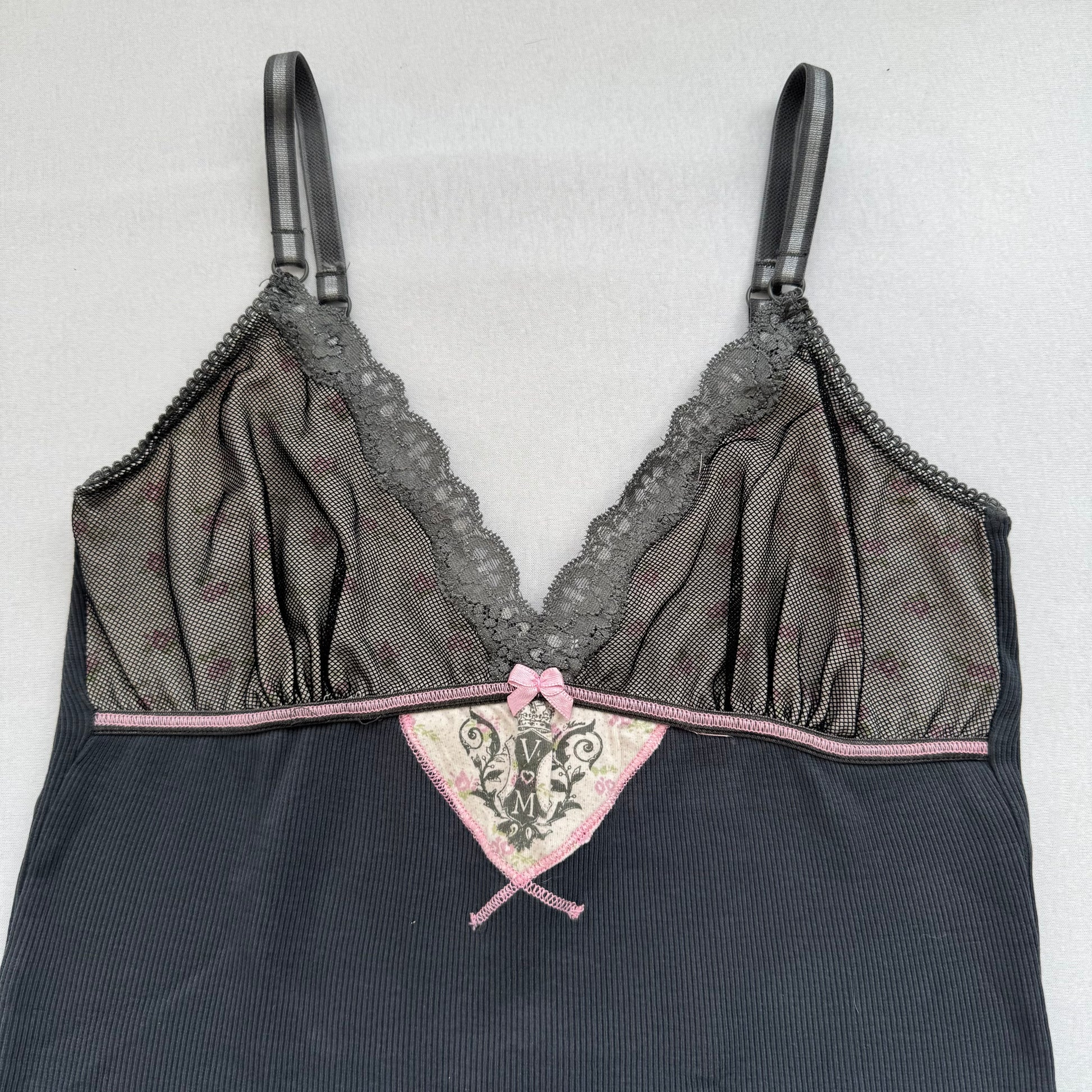 Adorable rare vintage Vive Maria Top. Grey with cute mesh bust part and lace. Sweet pink Details. Adjustable straps. Size M
