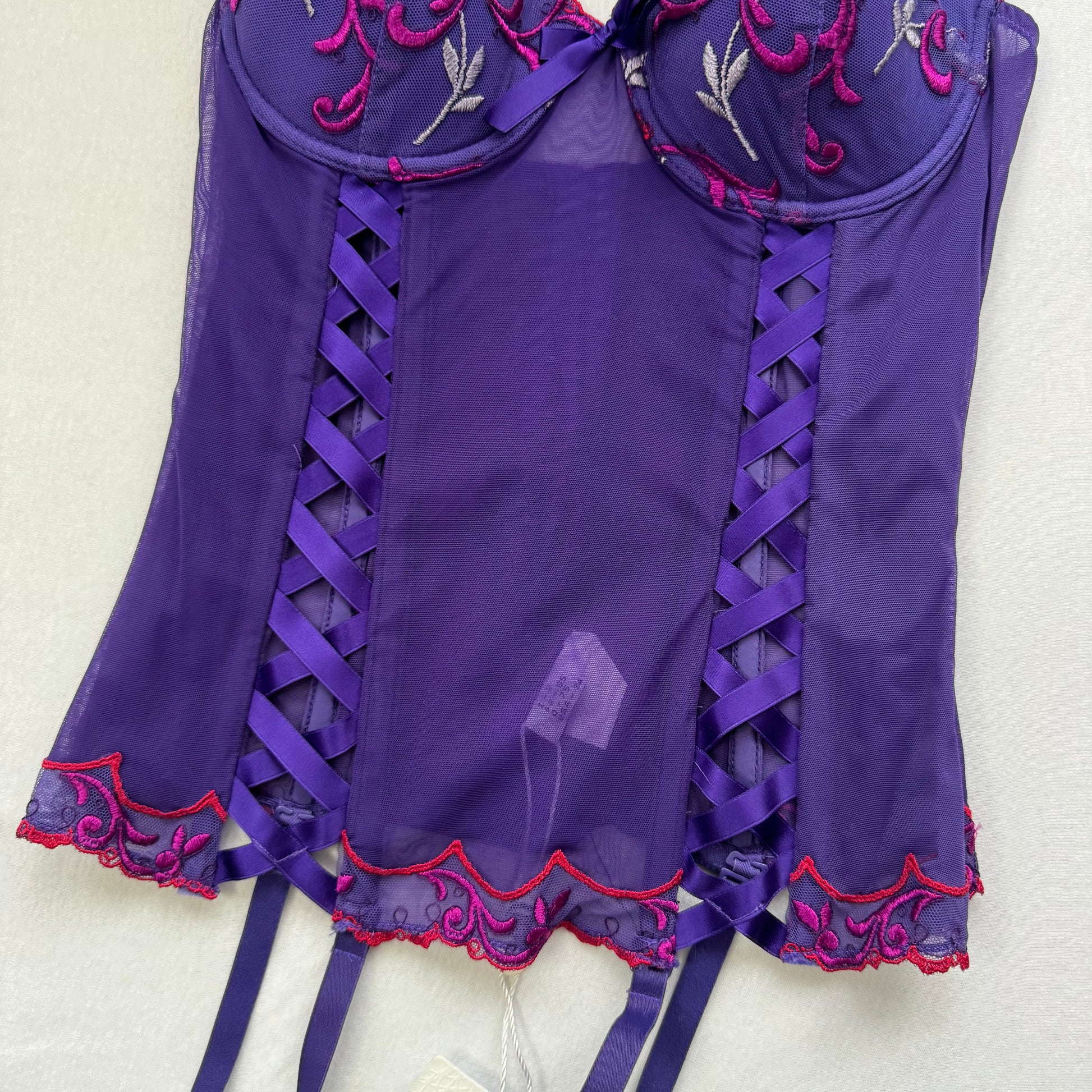 Beautiful deadstock designer corset top from Christies. It has a lace up detail in the front. The straps are adjustable and it has hooks in the back. Size 70B