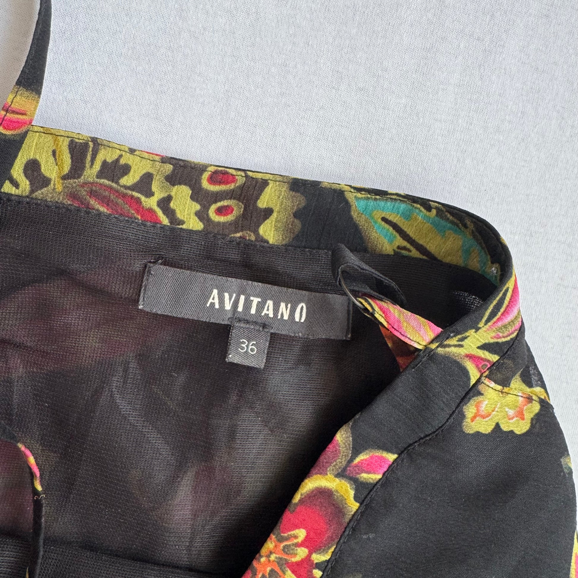 Stunning black vintage dress with flowers. Adjustable straps and has a zipper on the side. Size 36