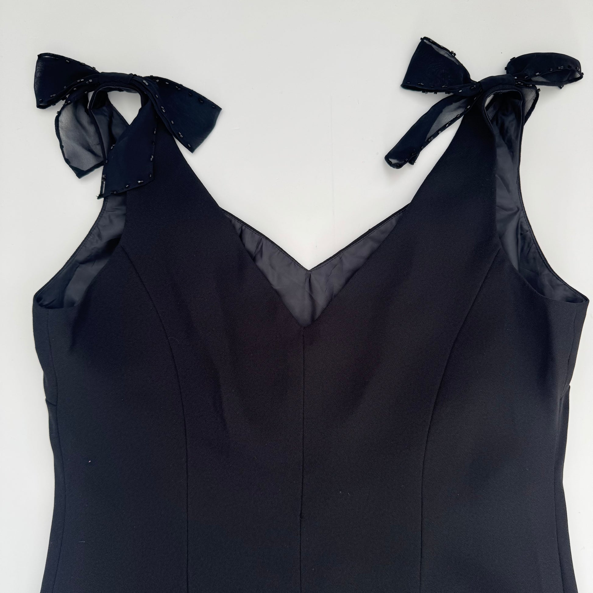 Adorable black vintage dress with bows on the shoulders. Cute pearl details.