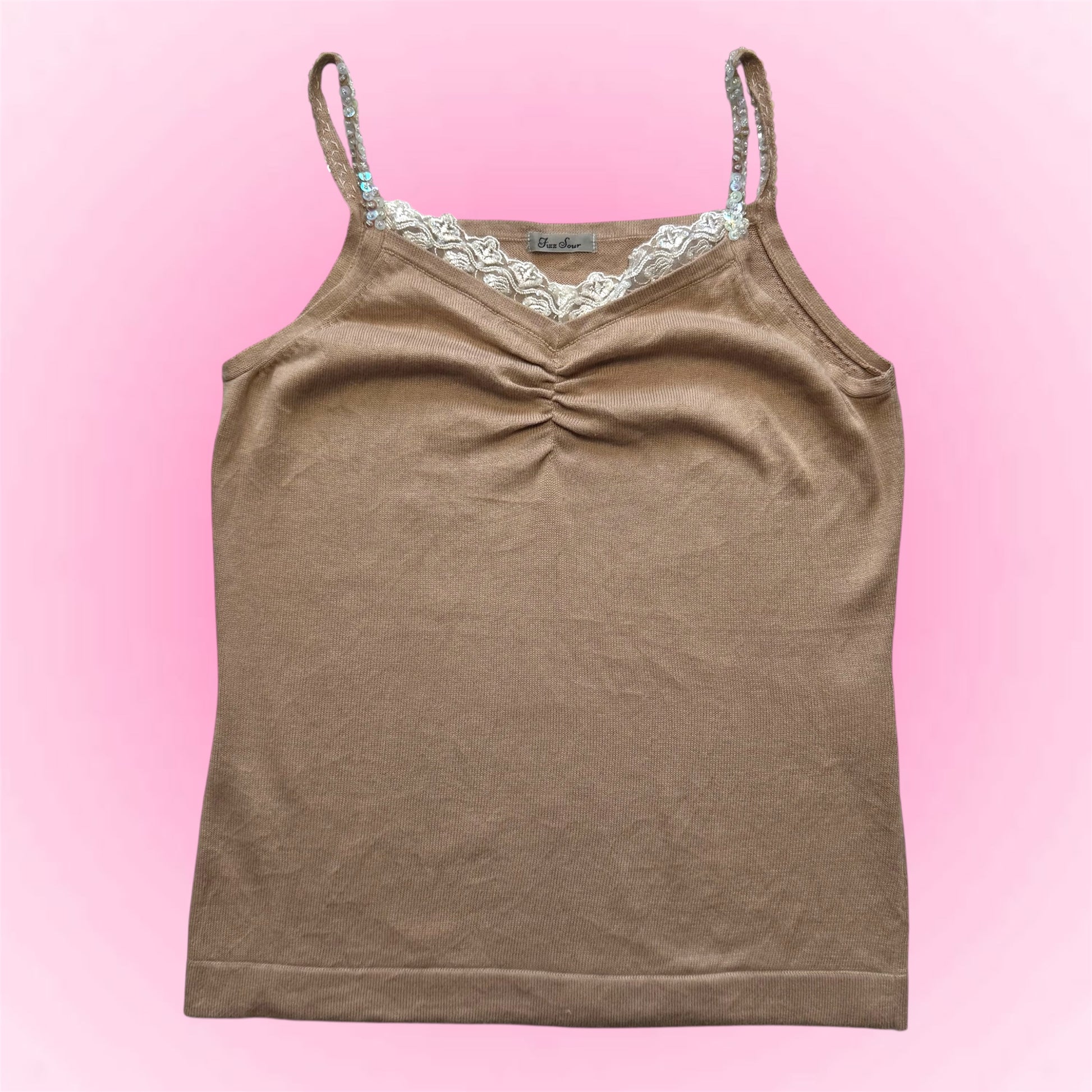Cute brown fairy top with lace details and sequins on the straps. Size 38 fits S