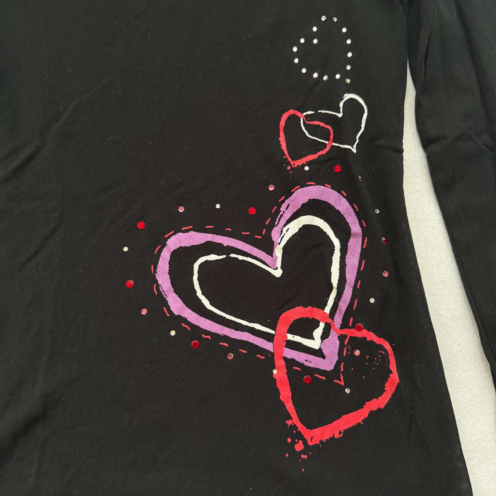 Cute black mesh longsleeve from Etam. Adorable heart print with rhinestones. Material is see through. Size 34