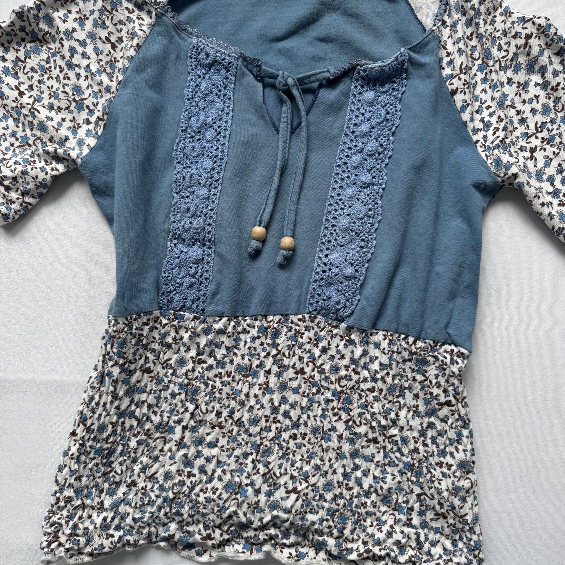 Cute Boho Tshirt with flower print. Elastic parts of the shirt are already old. Size M