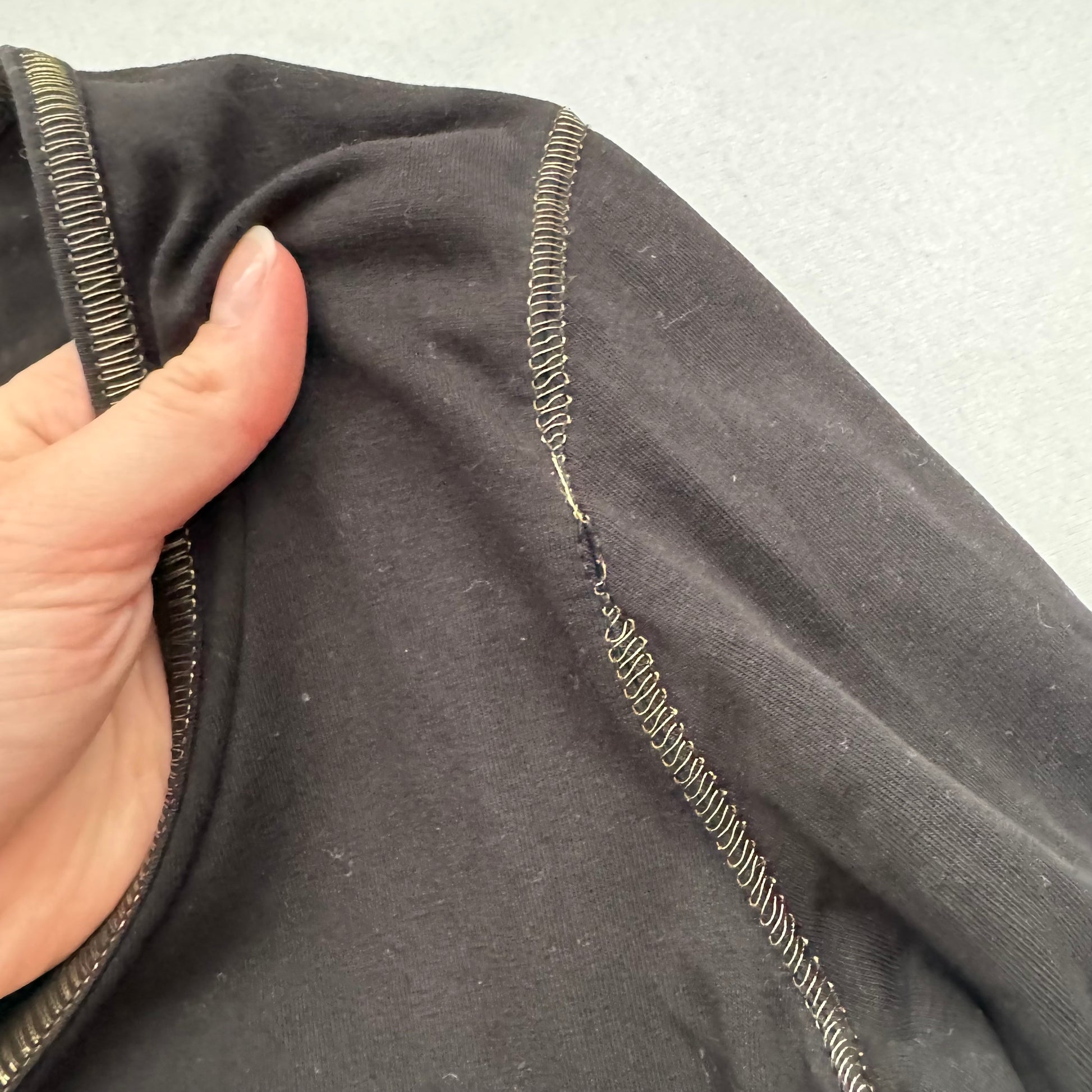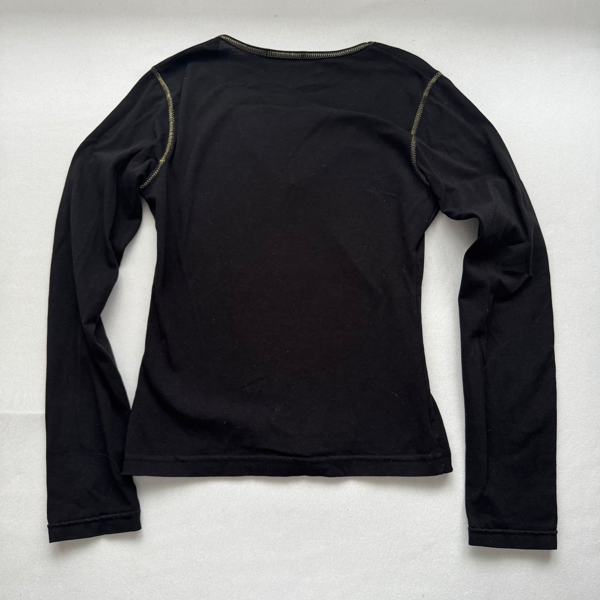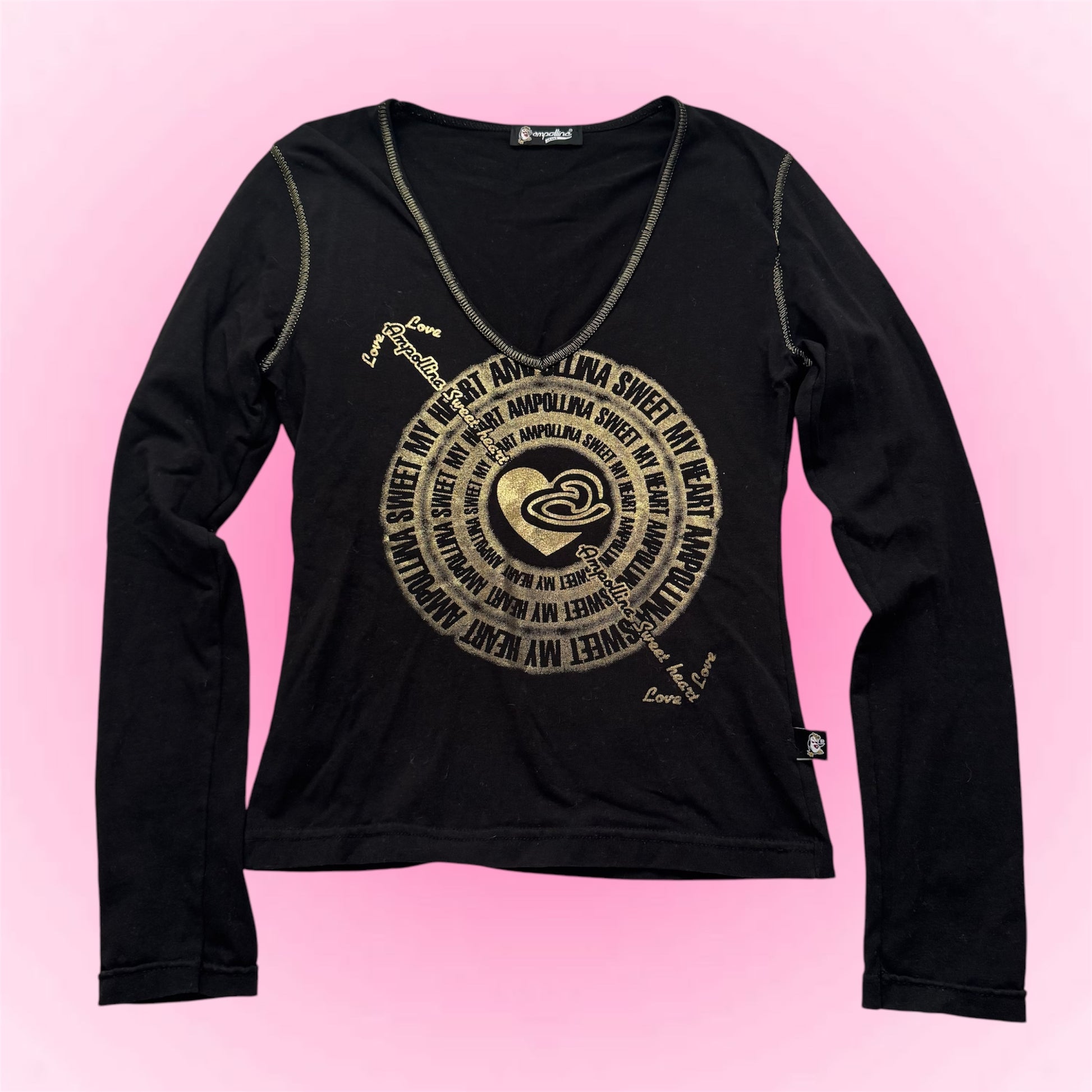 Cool black longsleeve with golden heart print in the front. Has a small hole on the shoulder by the hem (seen on picture). Size fits S