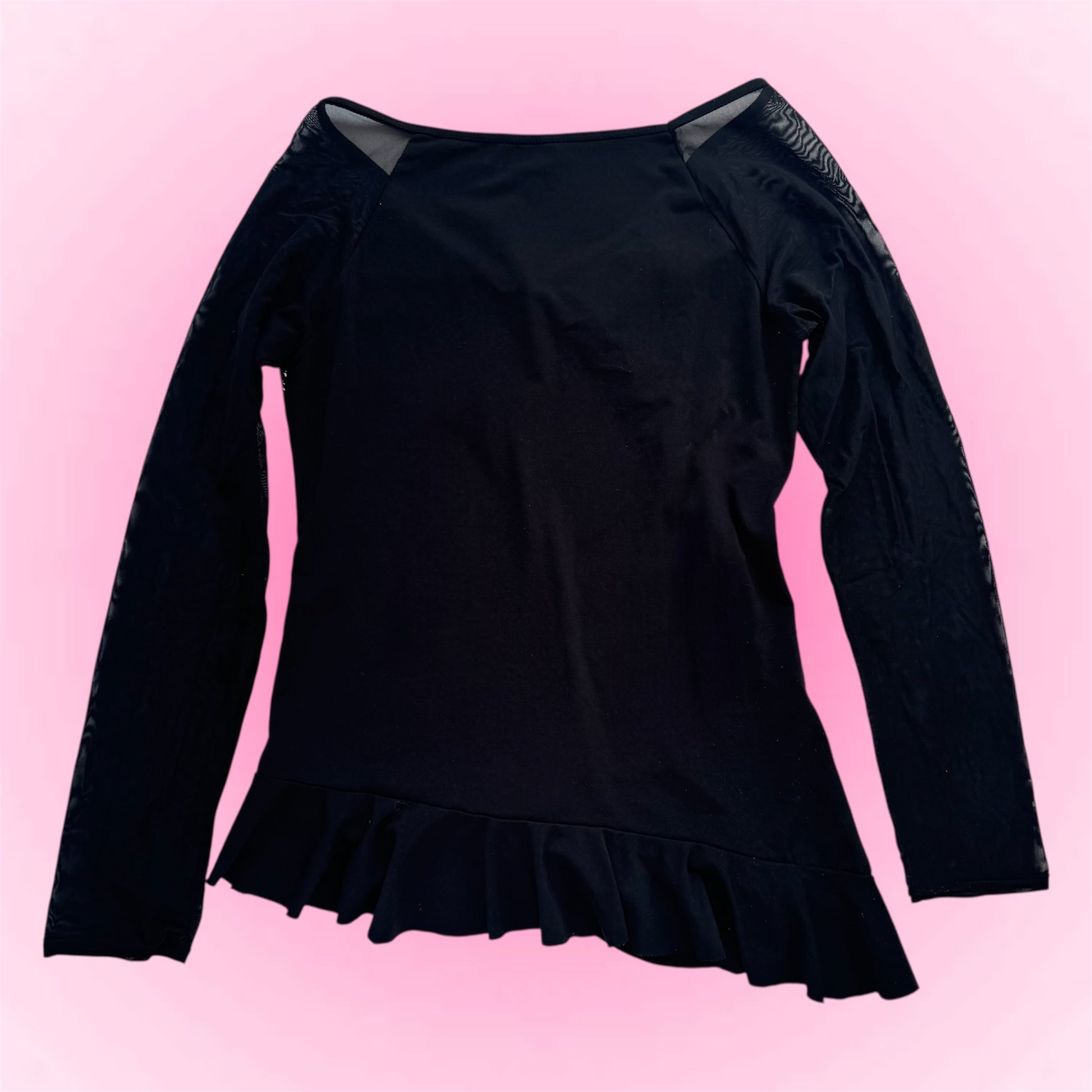Cute Y2k vintage longsleeve with pink glitter details. See through mesh sleeves.