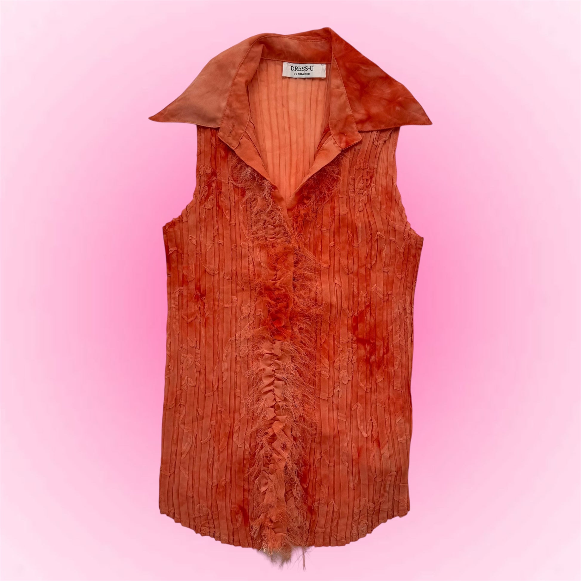 Sleeveless collared top in textured orange fabric. Cute Y2k summer piece.