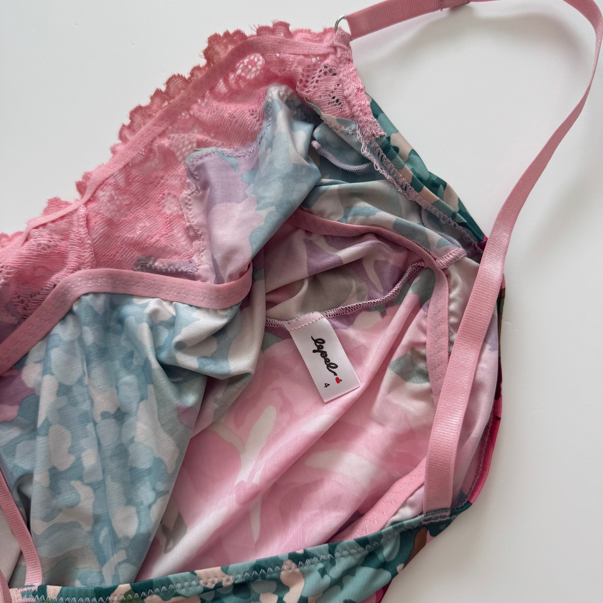 Cute pink flower dress/long top with lace and adjustable straps. Size fits M