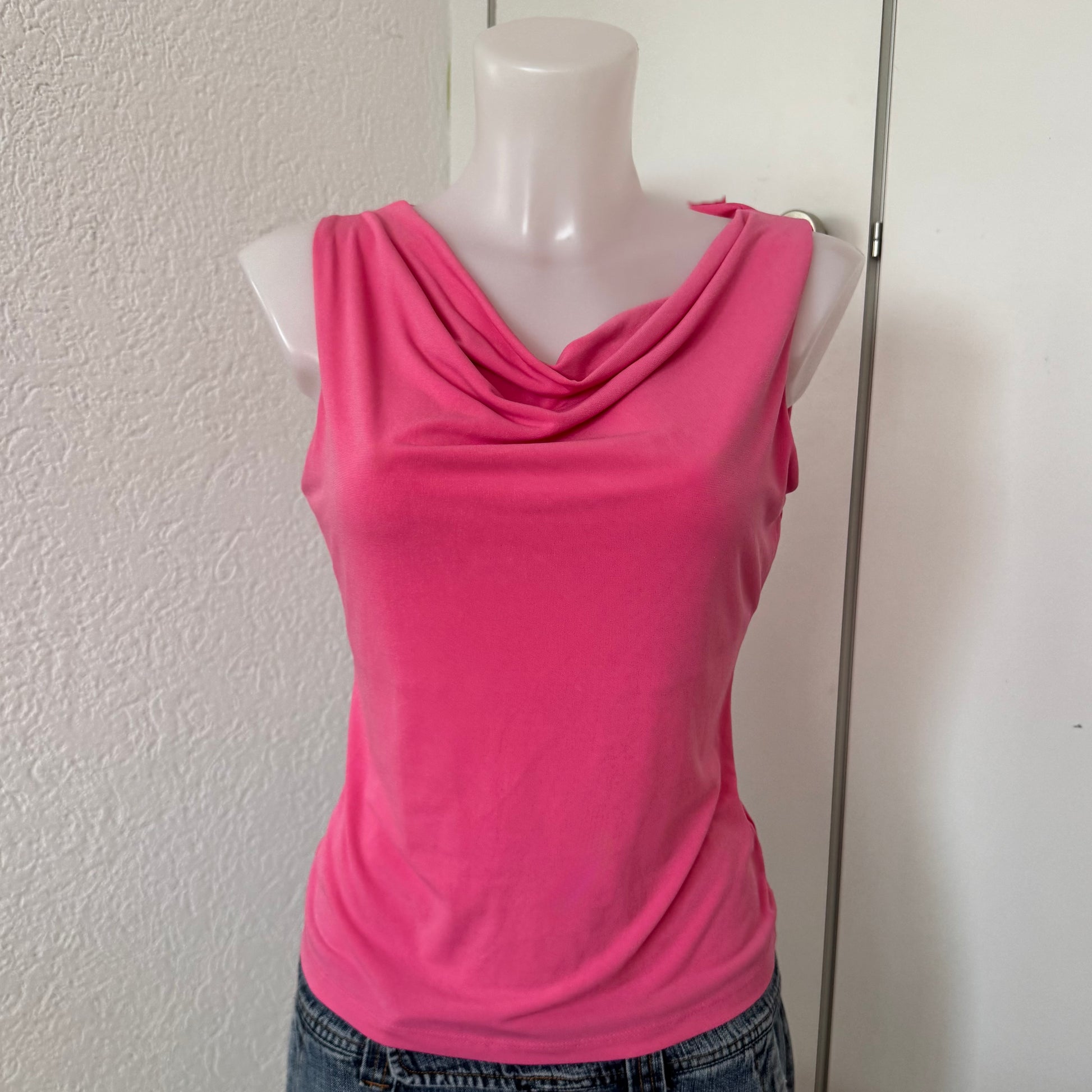 Soft sleeveless top with cowl neckline. Simple, flattering Y2K essential.