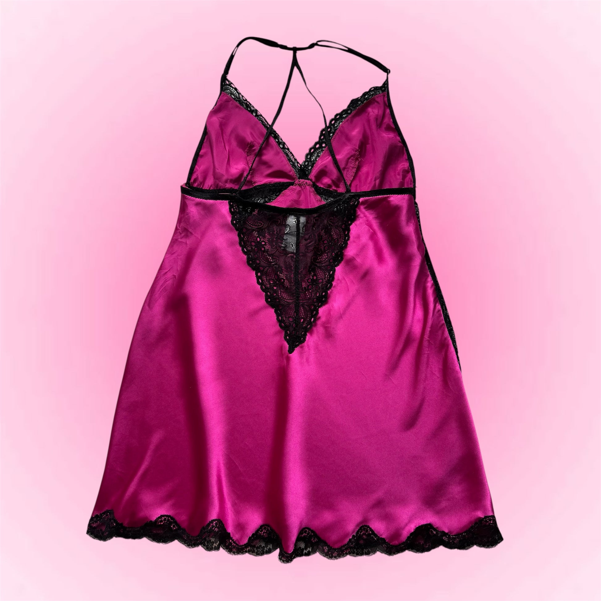 Beautiful Slip dress in pink with black lace. Adjustable straps. Size XL (fits M!)