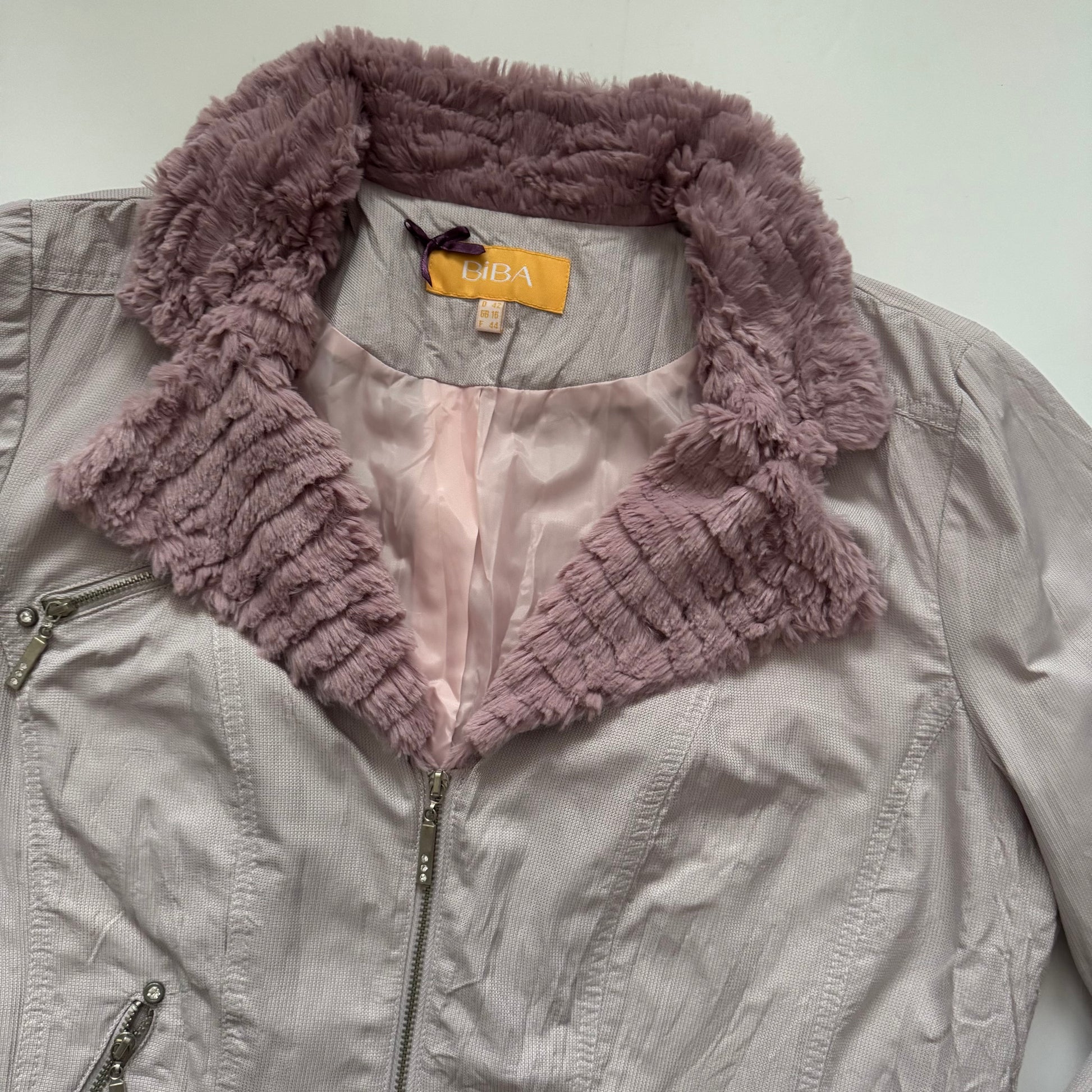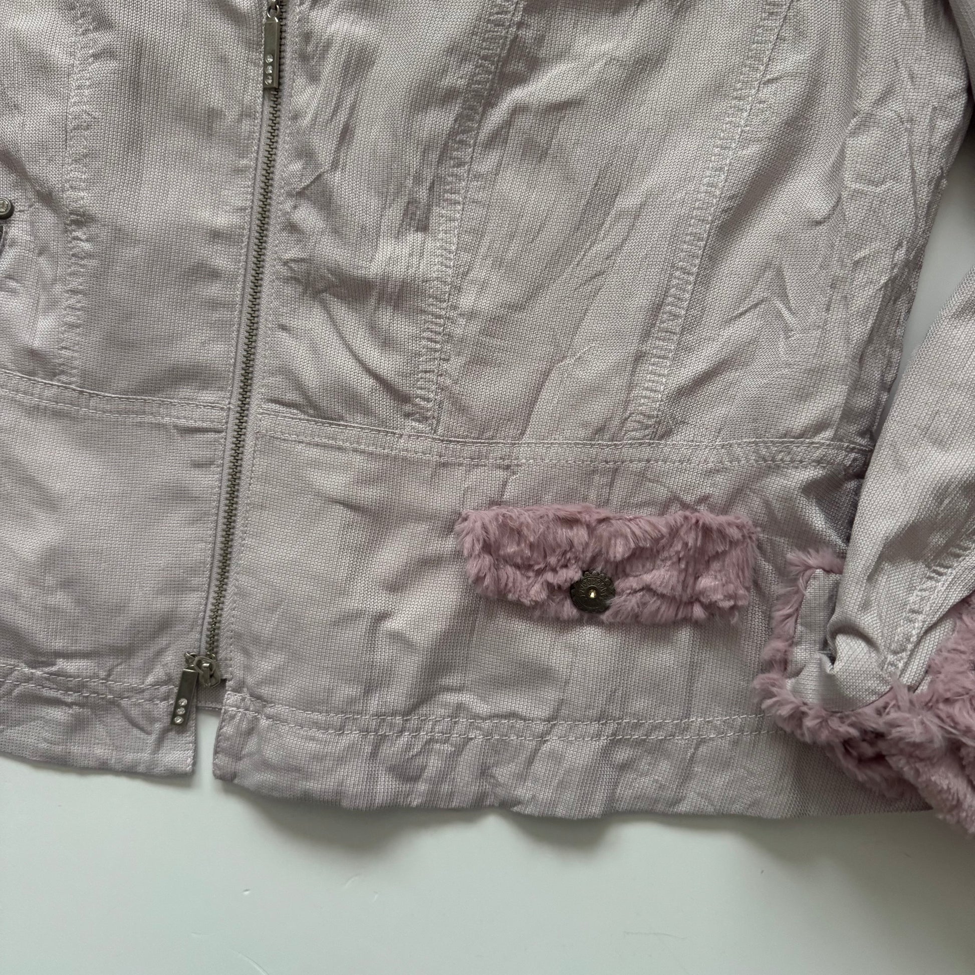 Pink cute jacket with fake fur details.
