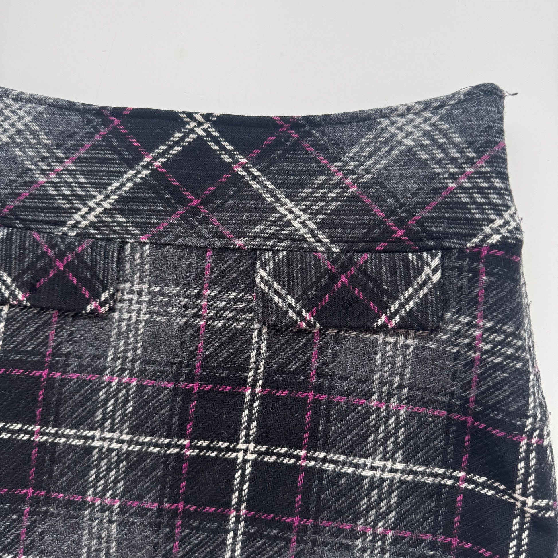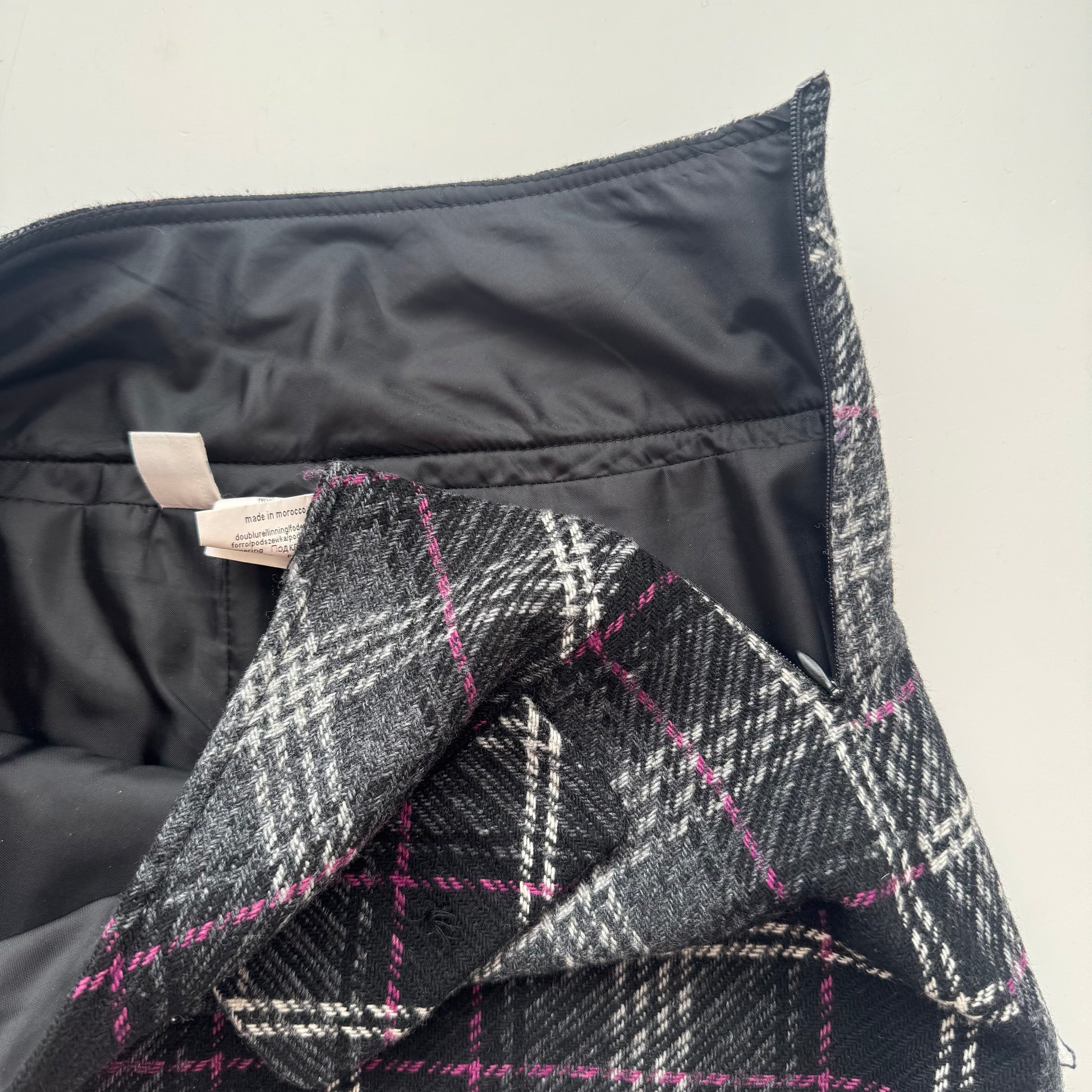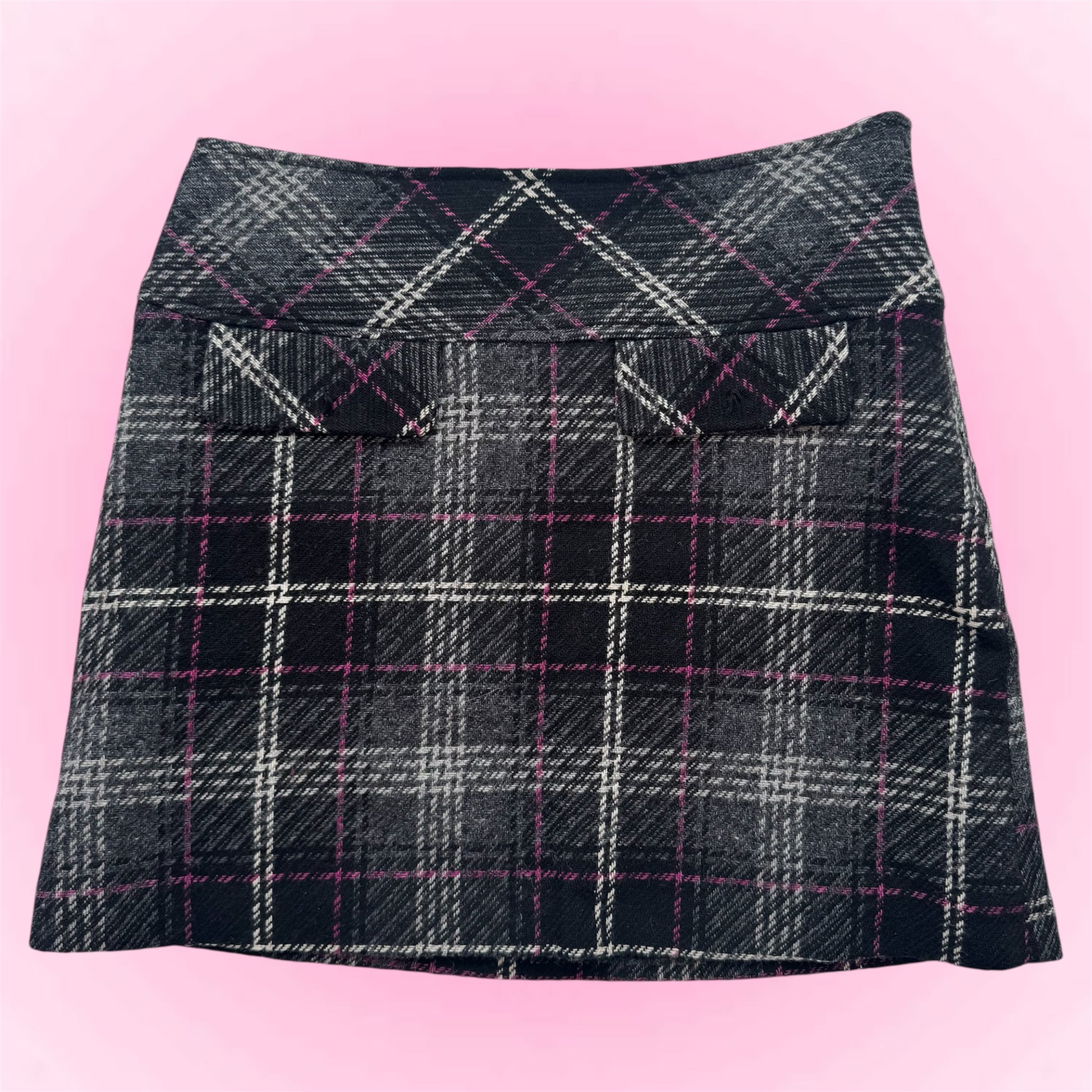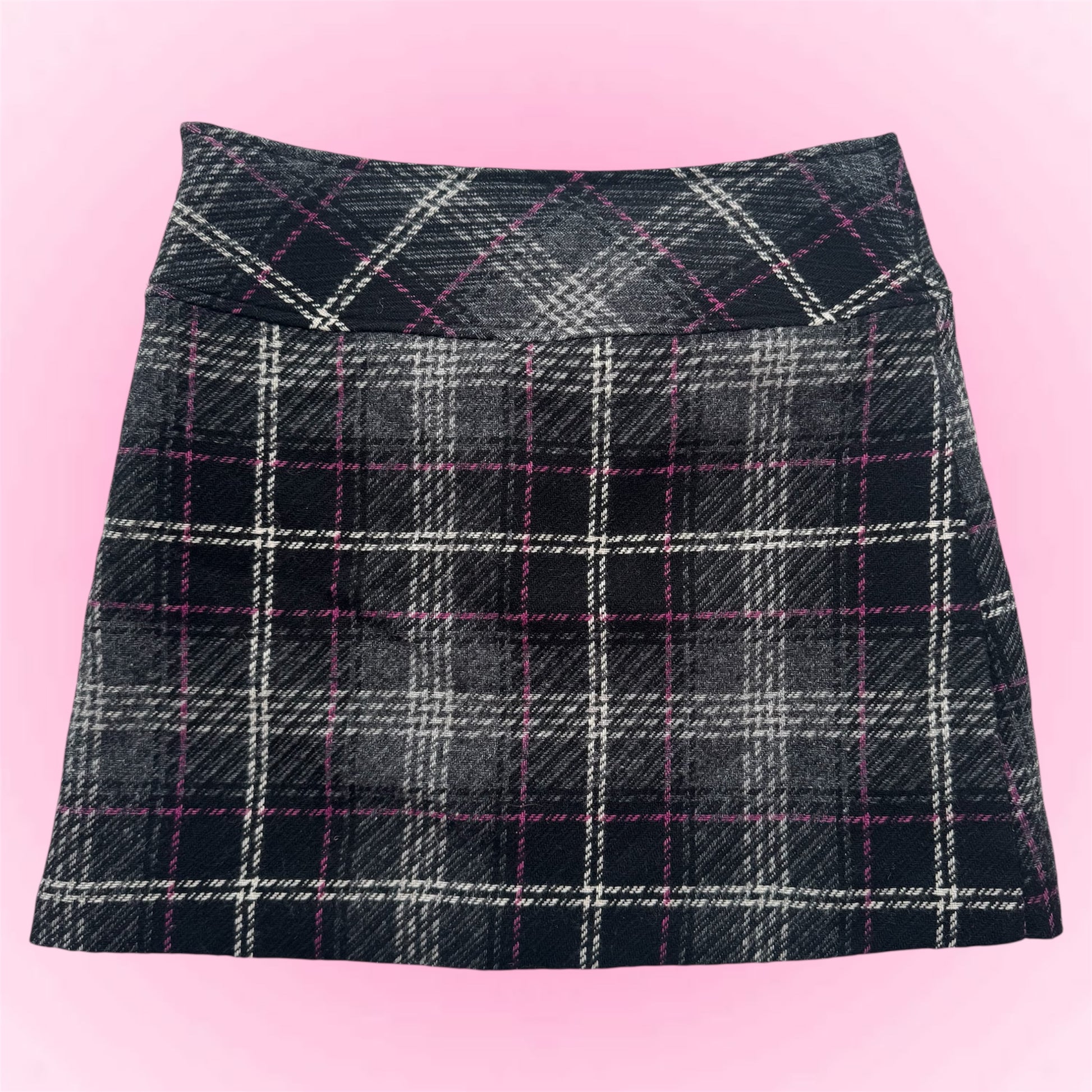 Classic Y2K plaid mini wool skirt with a fitted silhouette. Easy to style for everyday.