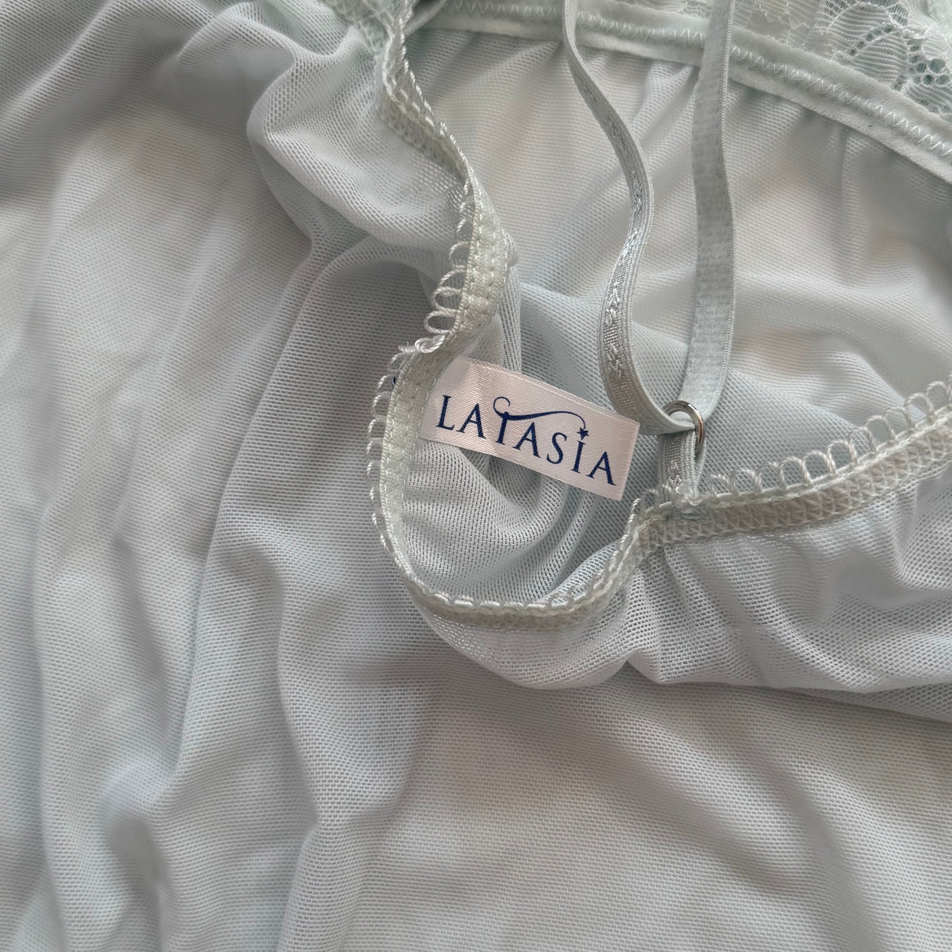 Adorable blue cami top. It has loops on the side for lace up detail.