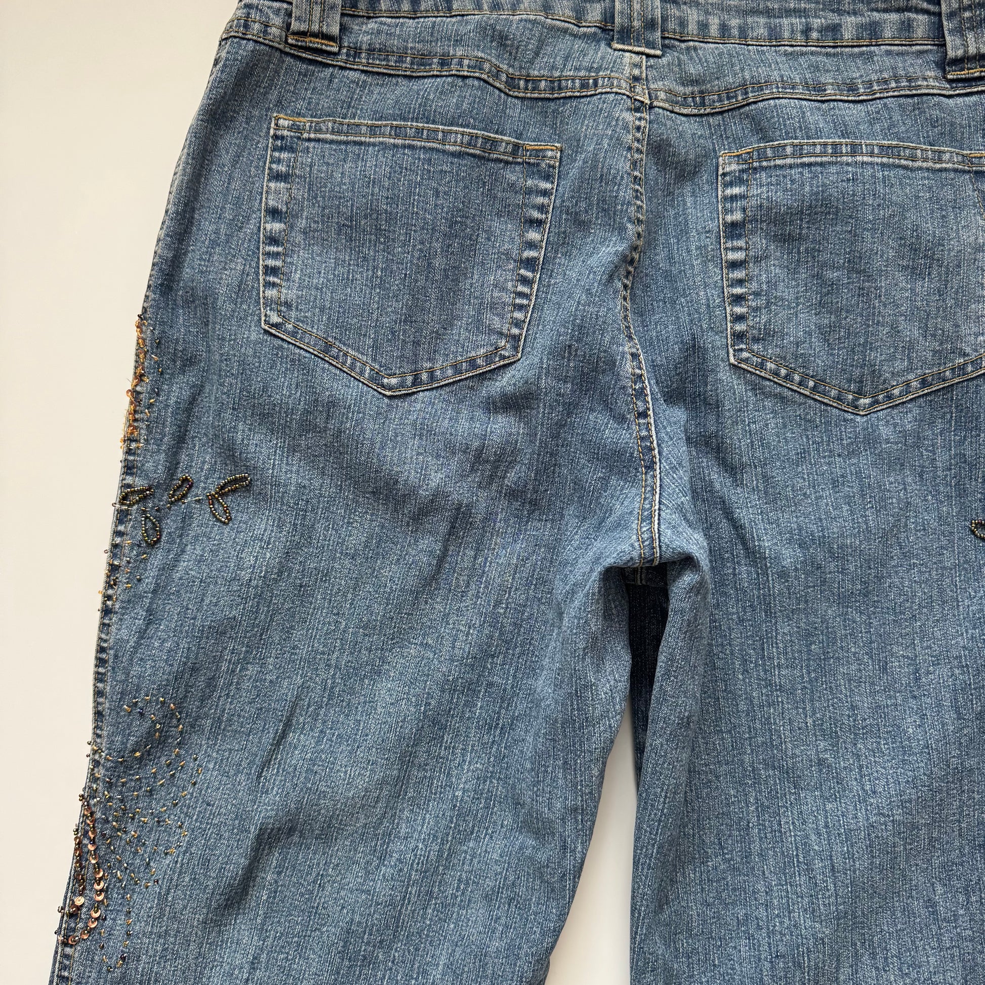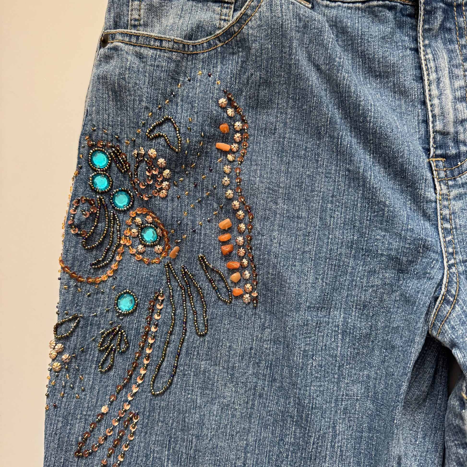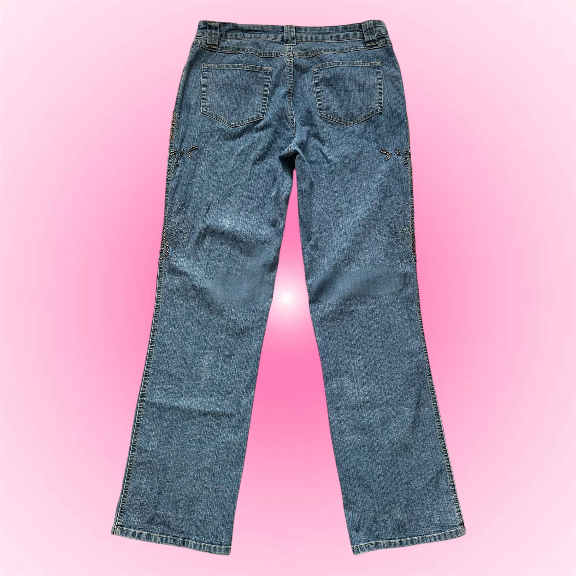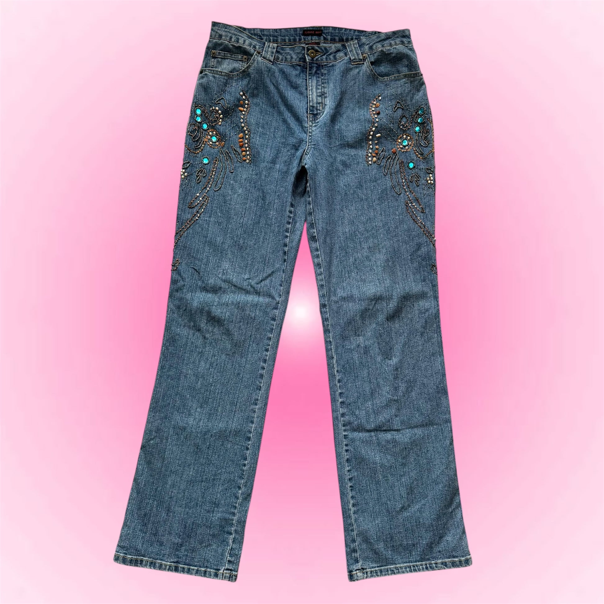 Cool Y2k denim vintage jeans with beads and little stones. High waisted.