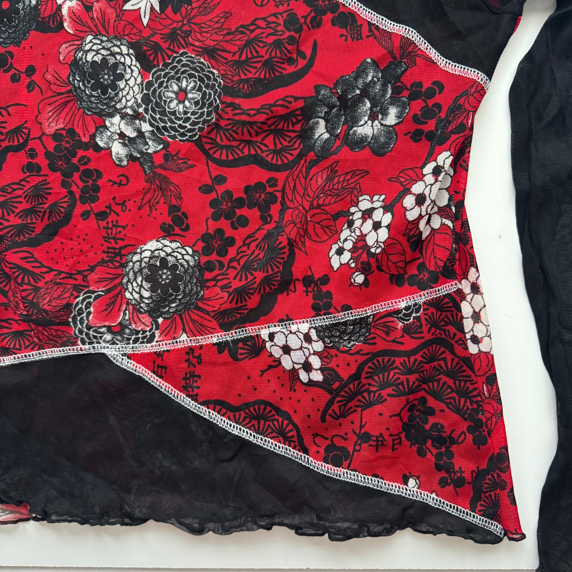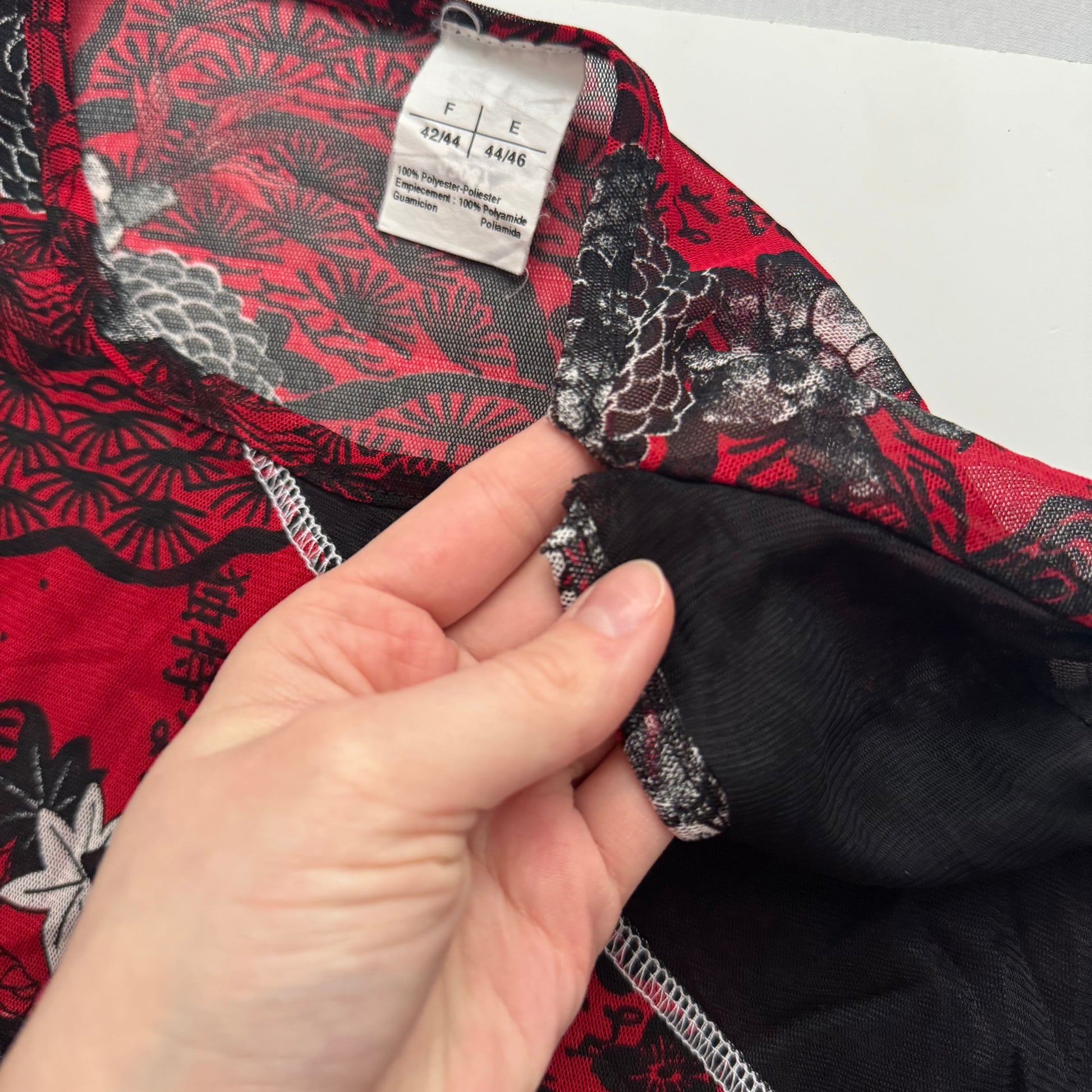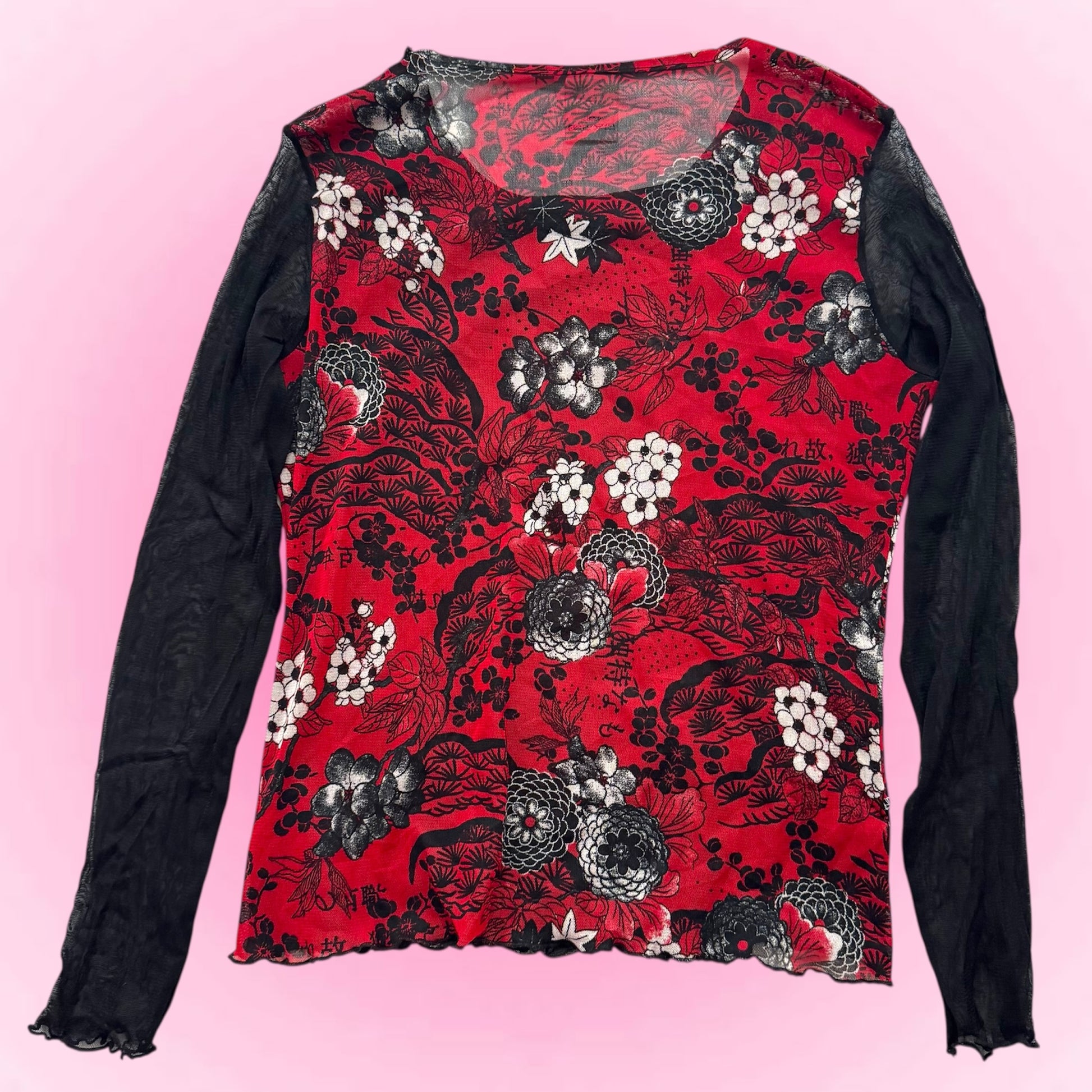 Cool black Y2K longsleeve with red pattern. See through material.