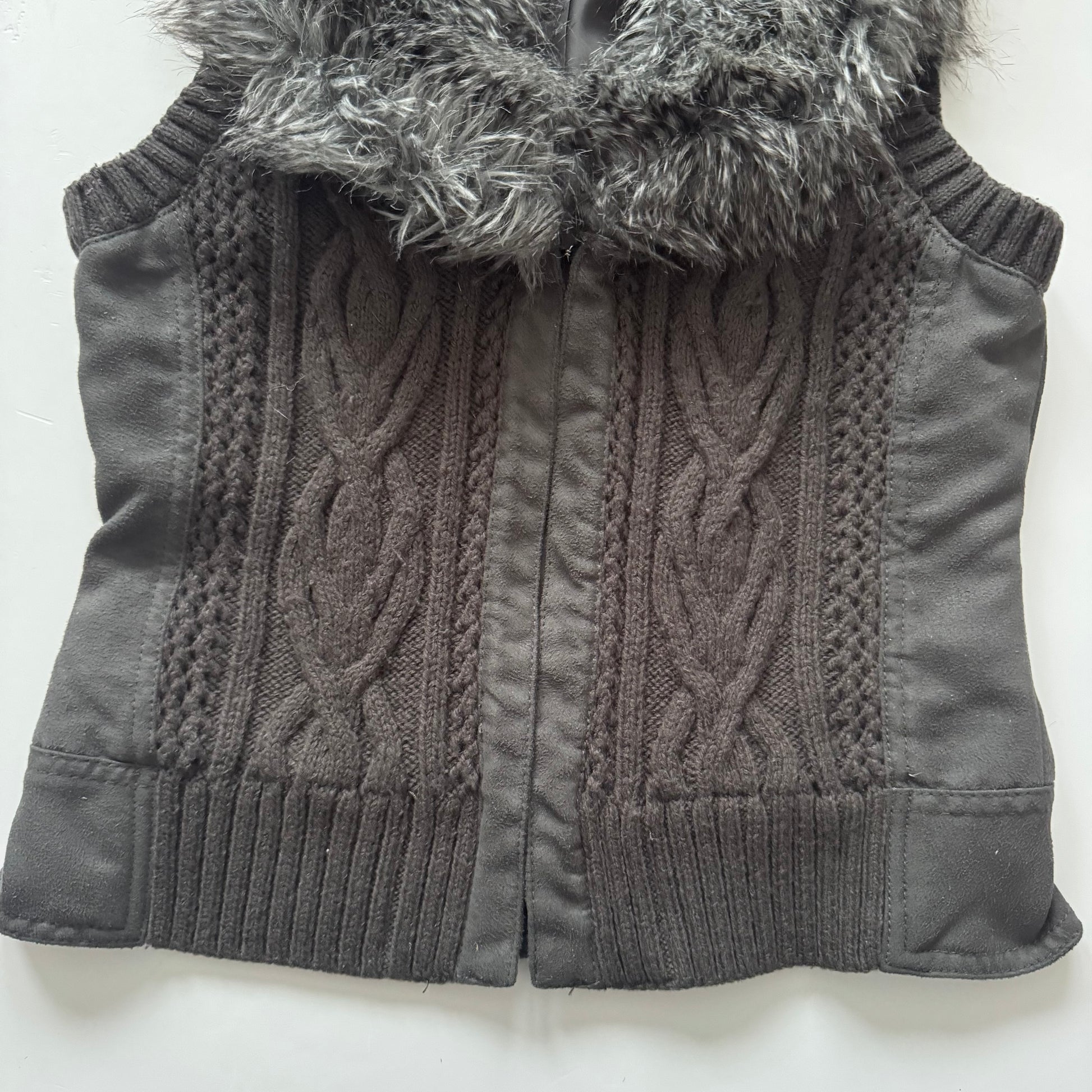 Grey vest with a faux fur collar for a cozy yet elegant look. Easy to style and ideal for layering during colder days.