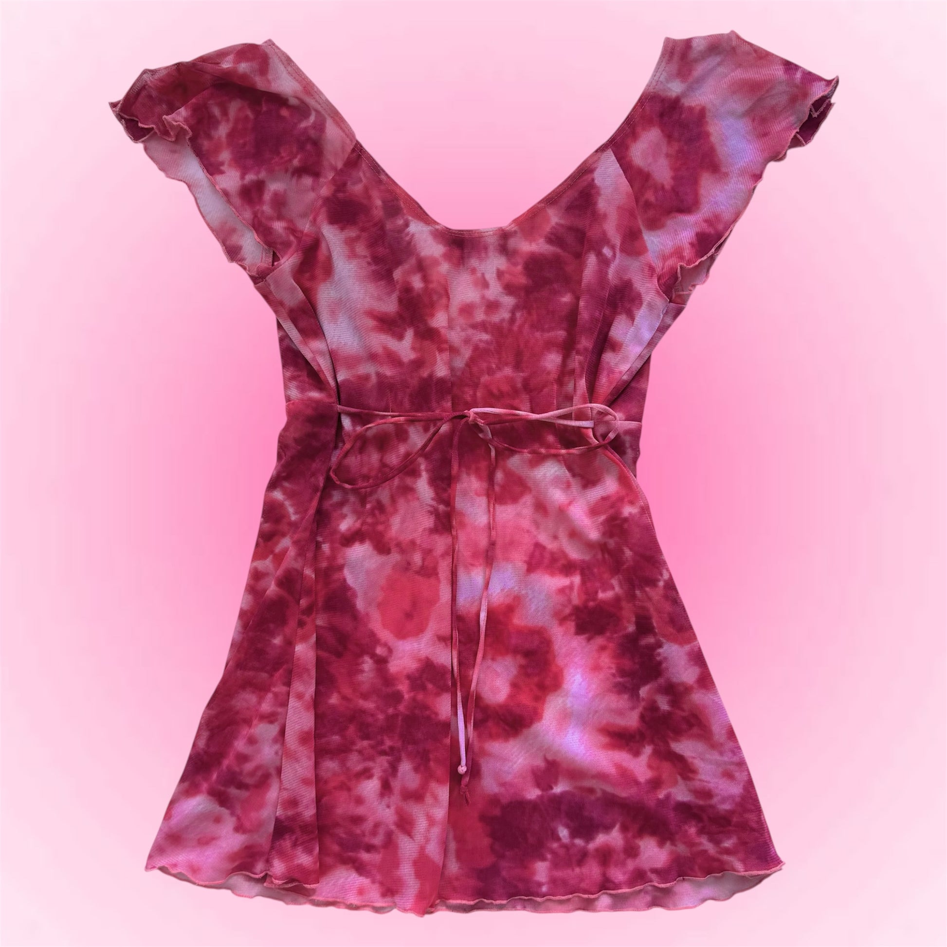 Cute tie-dye shirt with flared sleeves. Can be tied in the back.