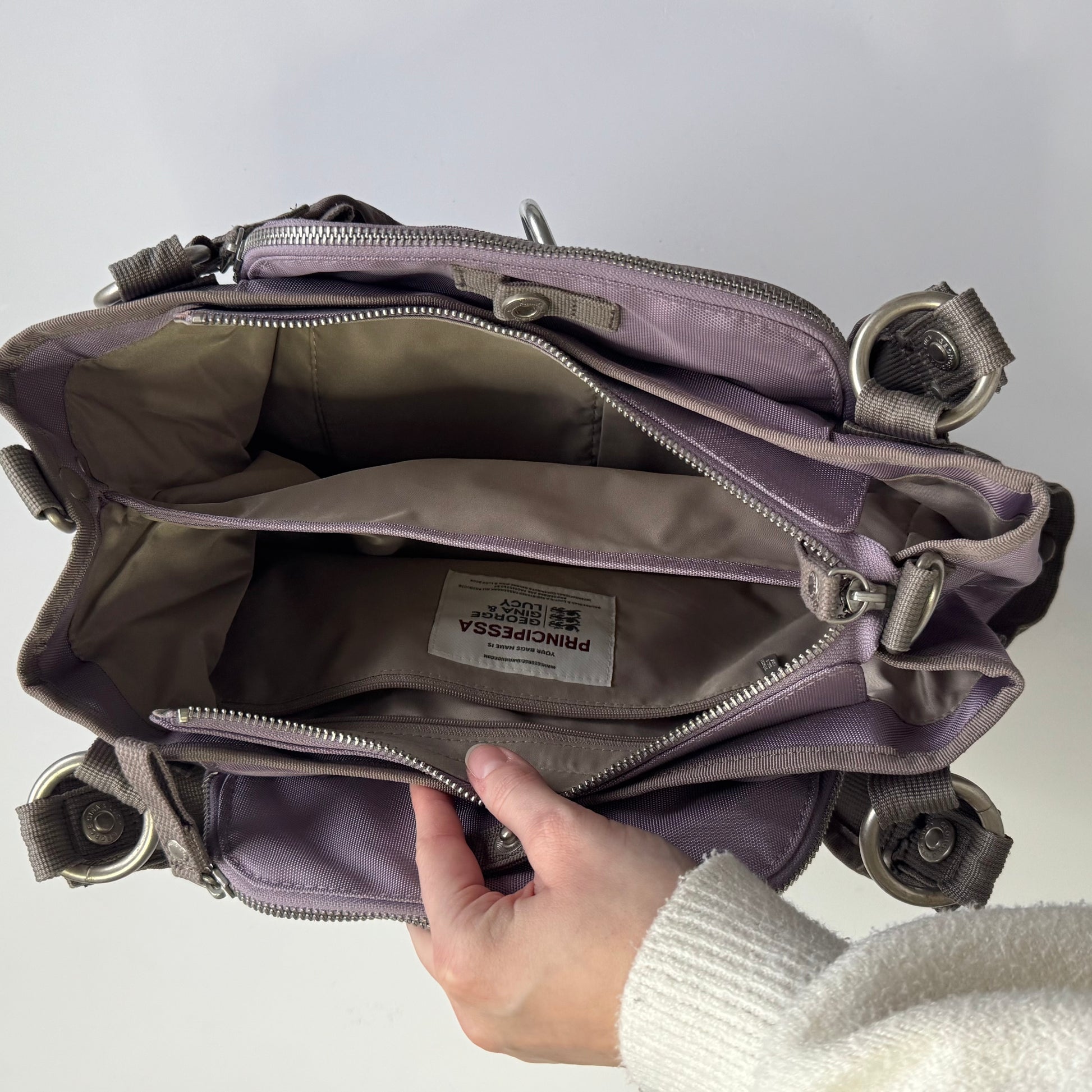 Adorable lavender George, Gina &Lucy Principessa shoulder bag. Multiple practical compartments.