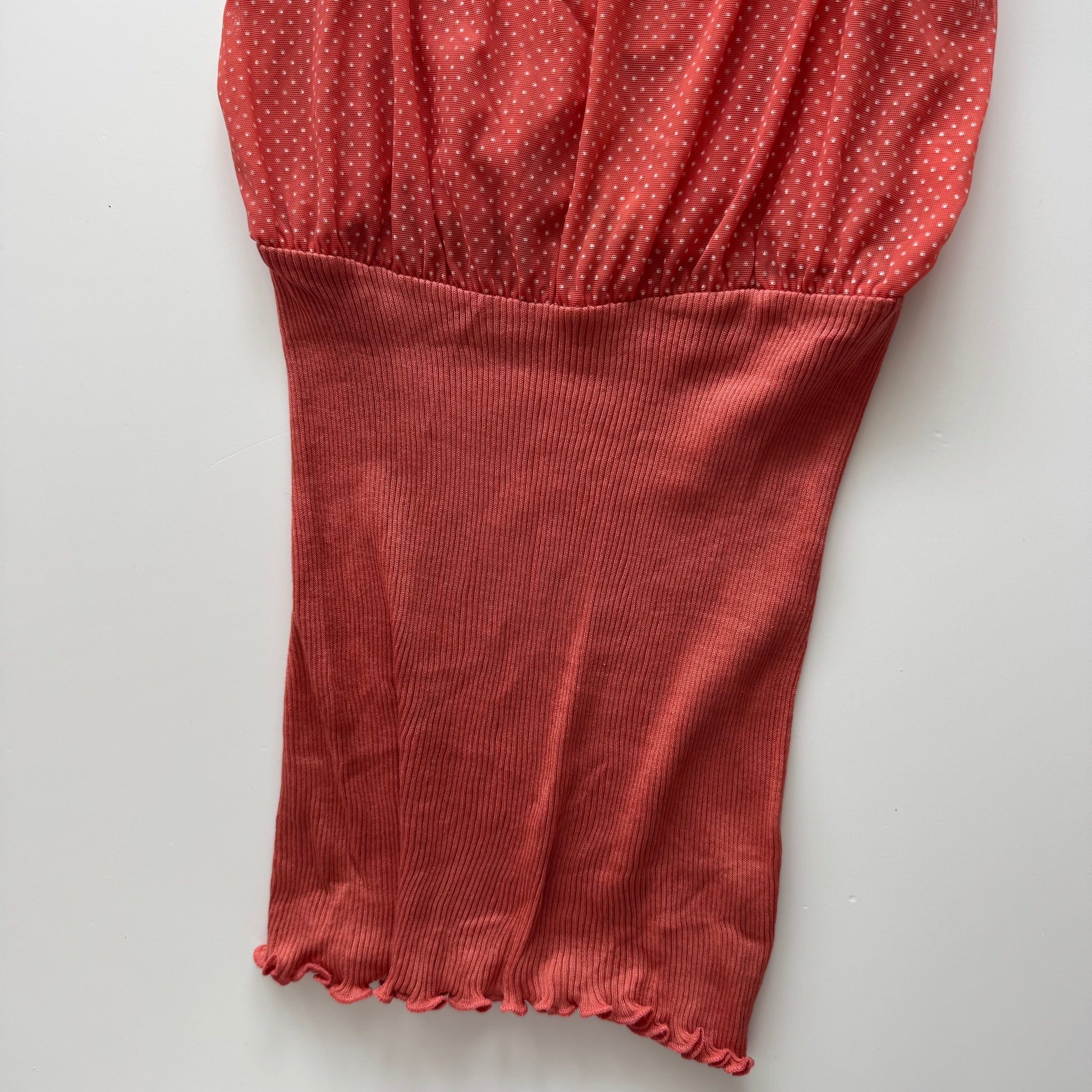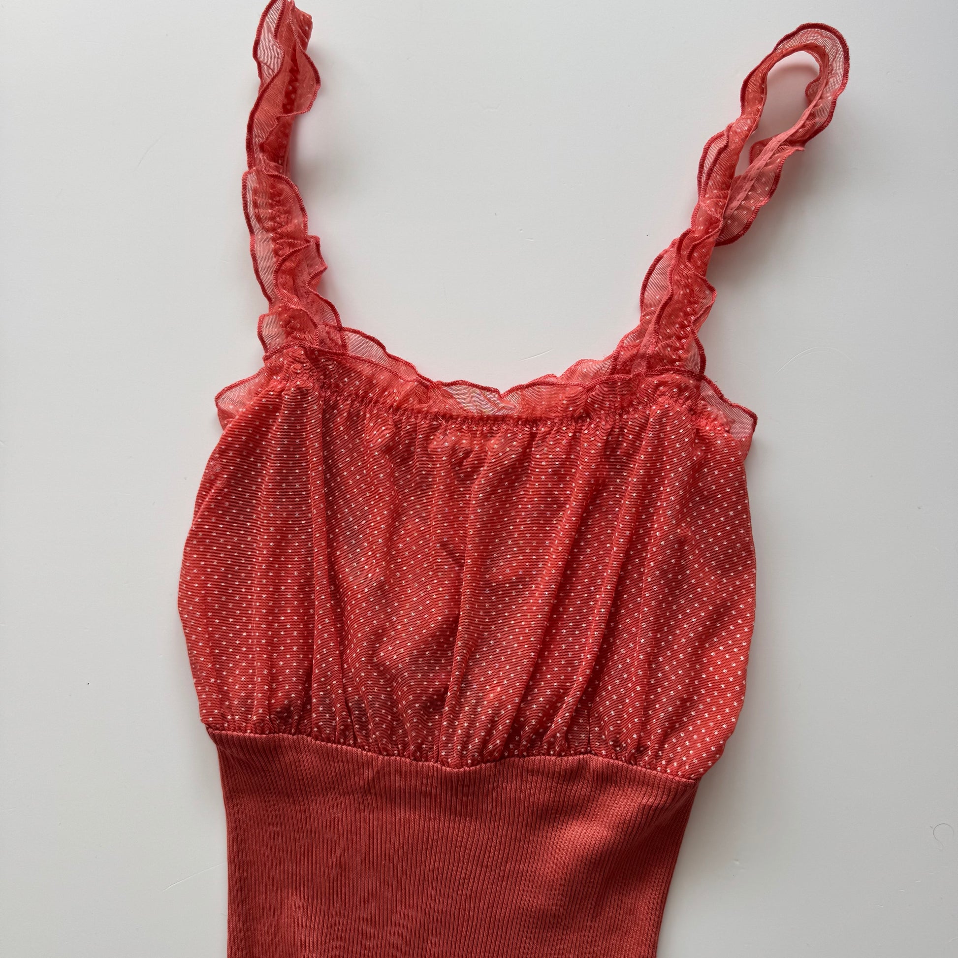 Cute orange Y2k top with mesh details. Stretchy material. Size fits S