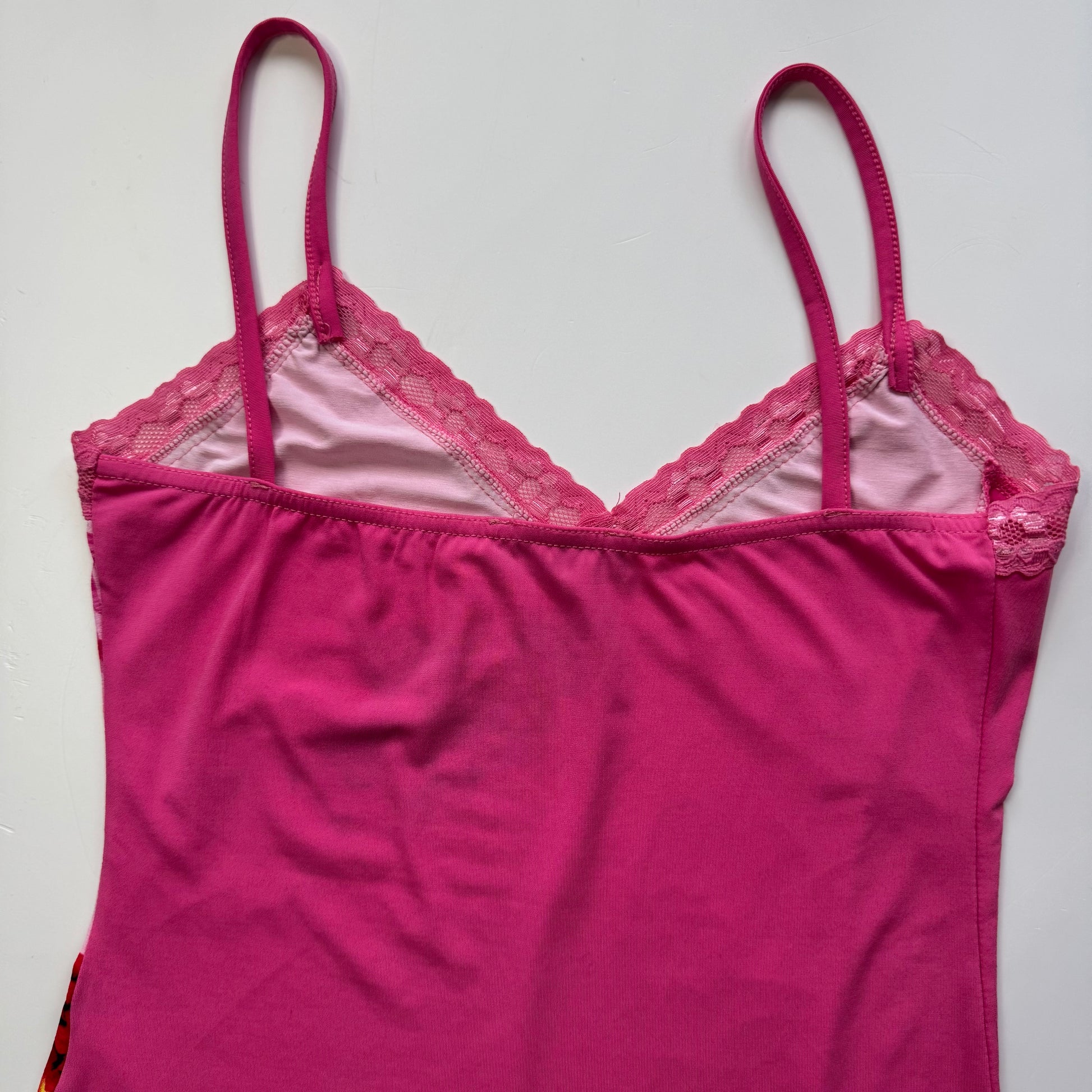 Beautiful pink Y2k cami top with flower print. Slightly asymmetrical hem.